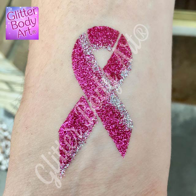 Our Cancer Ribbon Glitter Tattoo Stencil are a beautiful stencil used for fundraising event for Cancer Research and other charities.