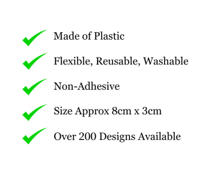 Made of flexible hardwearing plastic which are non-adhesive, re-useable and washable.