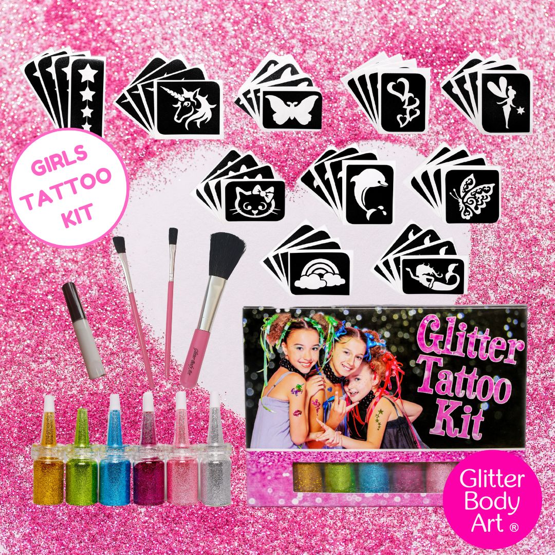 Our Girls Glitter Tattoo Kit is perfect for giving as a birthday, christmas present or if your doing your own small party or sleepover.