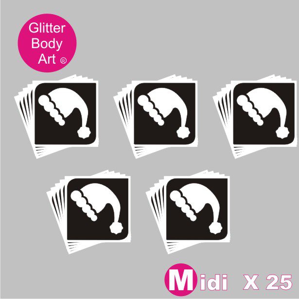 Midi Santa Hat Temporary tattoo stencils are templates used for creating sparkly glitter tattoos and are designed by Glitter Body Art![]()