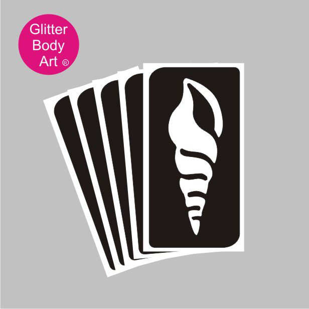 Our Seashell Glitter Tattoo stencil is a templates used for creating sparkly glitter tattoos and are designed by Glitter Body Artglitter body art registered trademark
